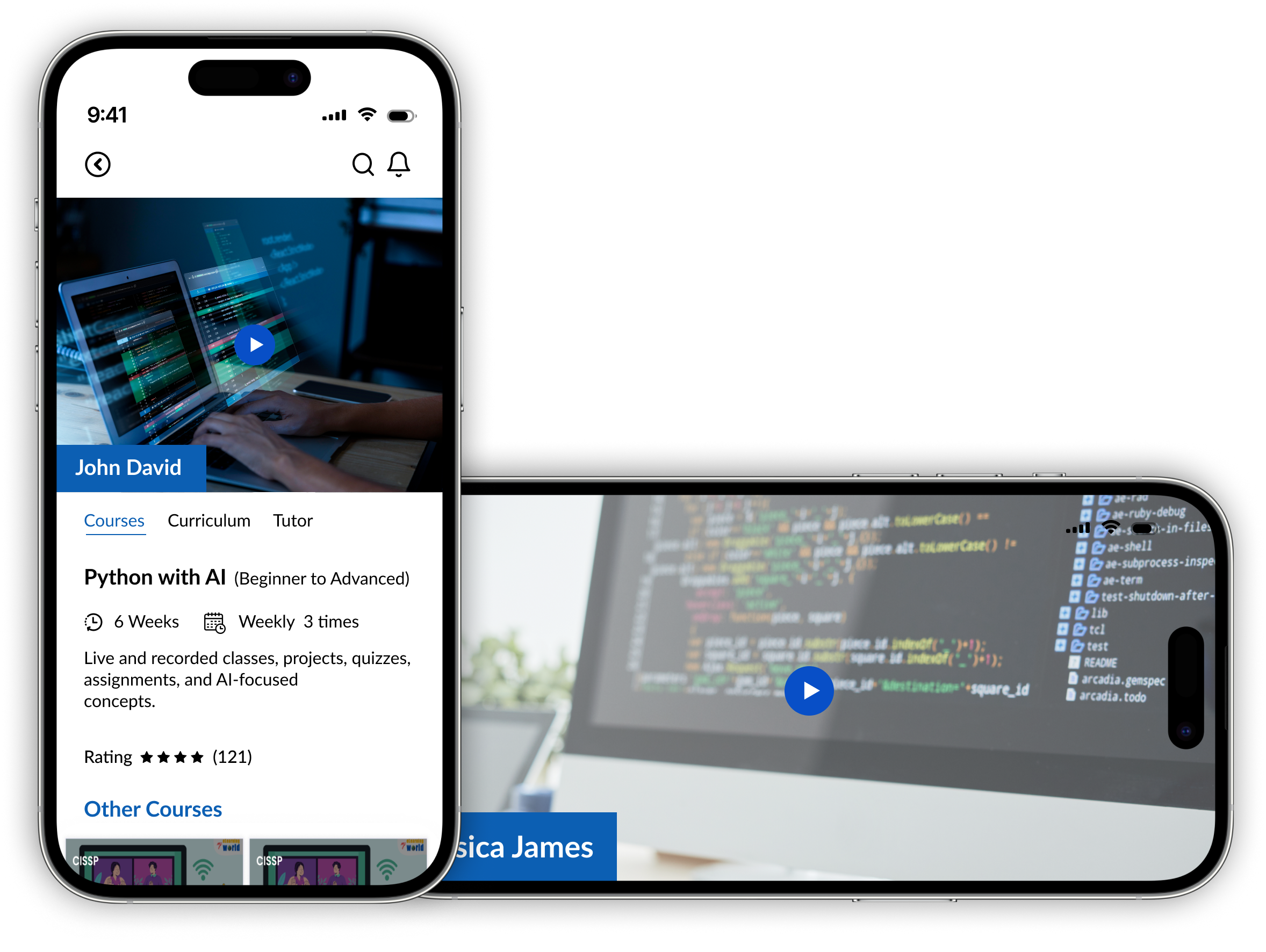 Live and recorded classes, projects, quizzes, assignments, and AI-focused concepts.